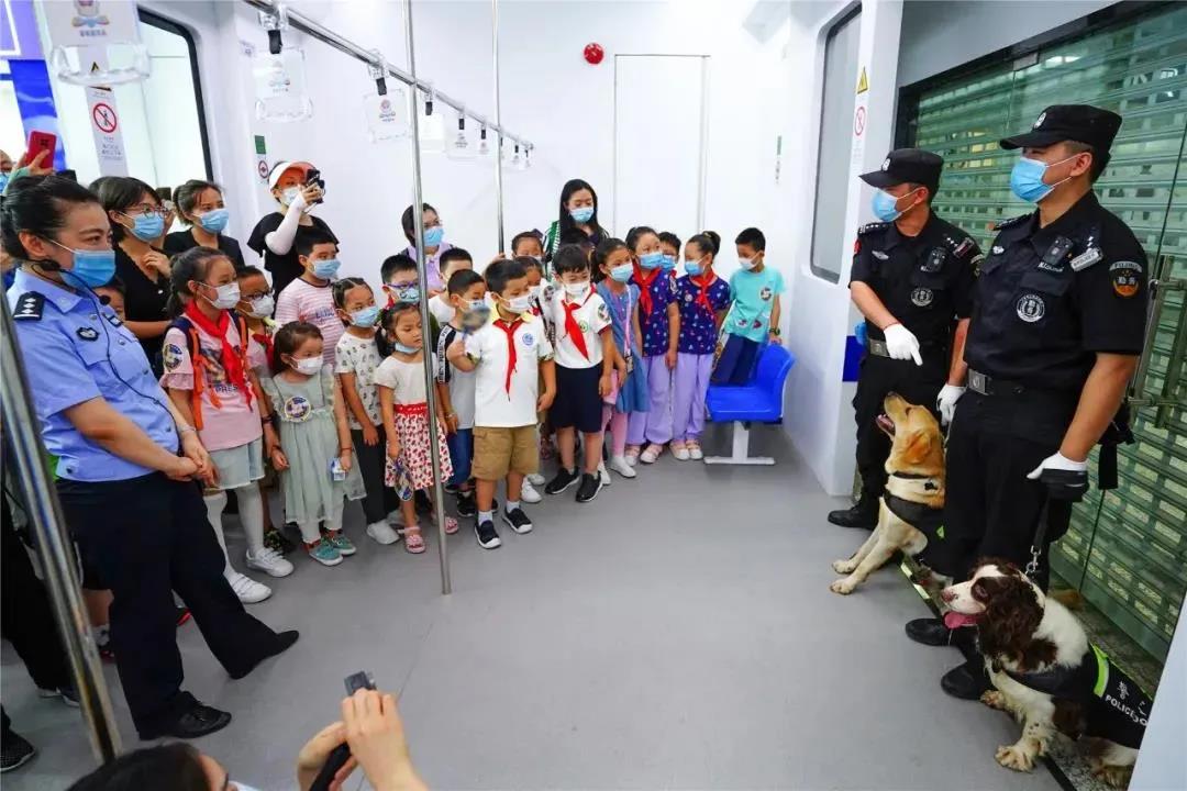 地鐵公安(ān)民警向參觀體驗(yàn)的小(xiǎo)學生講(jiǎng)解安防知識。警方供圖