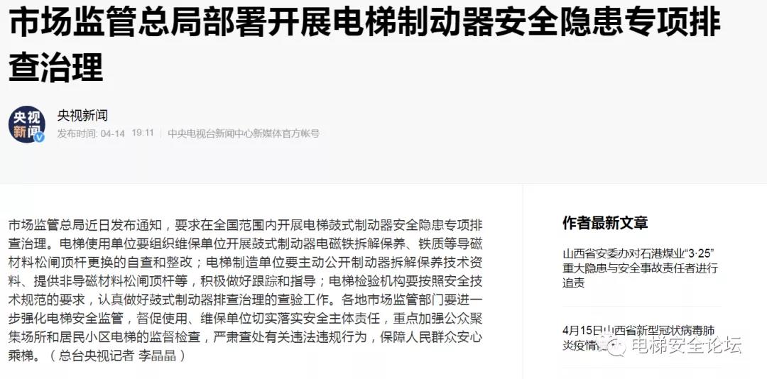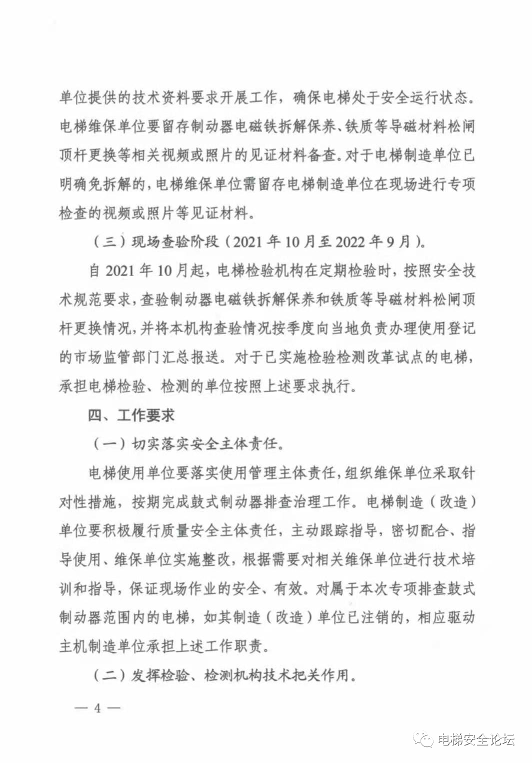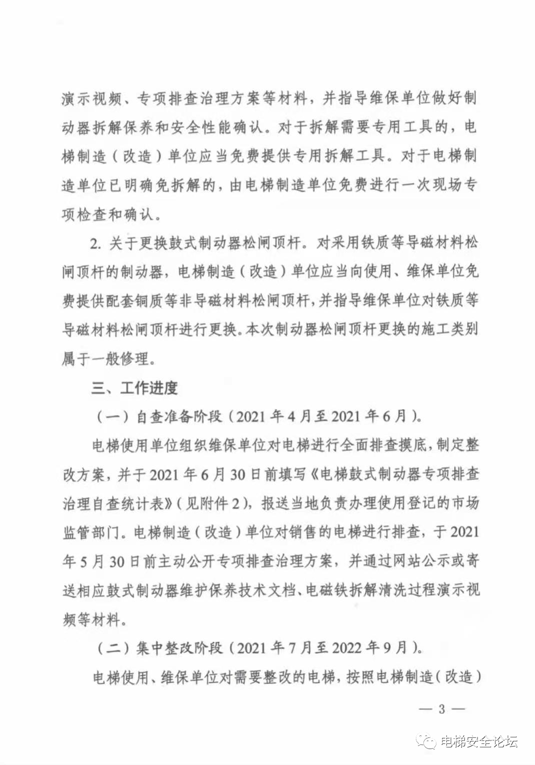 市場監管總局近日發布(bù)通(tōng)知,要求在全國範圍內開展電梯鼓式製動器安全隱(yǐn)患專項排(pái)查治理。電梯使用單位(wèi)要組織維(wéi)保單(dān)位開展鼓式製動器電(diàn)磁鐵拆解保養、鐵質等導磁材料鬆閘頂杆更(gèng)換的自查和(hé)整改;電梯製造單位要主動公開製動器拆解保養技術資(zī)料、提供非導磁材料鬆閘頂杆等,積極做好跟蹤和指導;電梯檢驗機構要按照(zhào)安全技術規範的要求,認真做好鼓式製動器排查治理的查(chá)驗工作。各地市場監管(guǎn)部門要進一步強化電梯安全監管,督促使用、維(wéi)保單位切實落實安全(quán)主體責(zé)任,重點加強公眾(zhòng)聚集場所和(hé)居民(mín)小區電(diàn)梯的監督檢查,嚴肅查處有關違法違規行為,保障人民群眾安心乘梯。(總台央視記者 李晶晶)