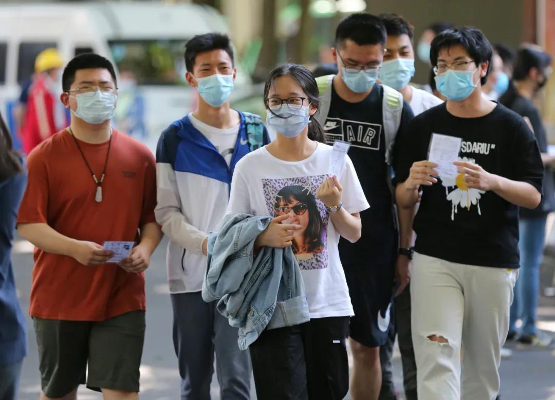 在考點(diǎn)外(wài)按順序排隊(duì)接受體溫檢測後進入考點,