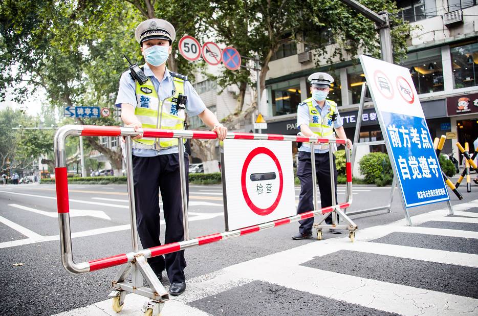 當(dāng)天14點50分至15點30分警方將對南京主城區內(nèi)的15處高考考點(diǎn)周邊道路實行臨時交通管控,