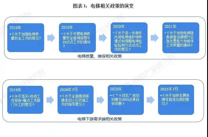 近年來,國務院(yuàn)、國家發改委、國家市場監督管理總局等多部門都陸續印發了支持、規範電梯行業的發(fā)展政策。近年來國家進一步規(guī)範房地產建築業以及推動舊改項目,電梯業也因此受益匪淺。在電梯質(zhì)量保證與維護方麵,各部門明確了責任主體並結合目(mù)前物(wù)聯網、雲平台等新技術(shù),推進了電梯故障排查、電梯乘客救援以及維保方式的發展。